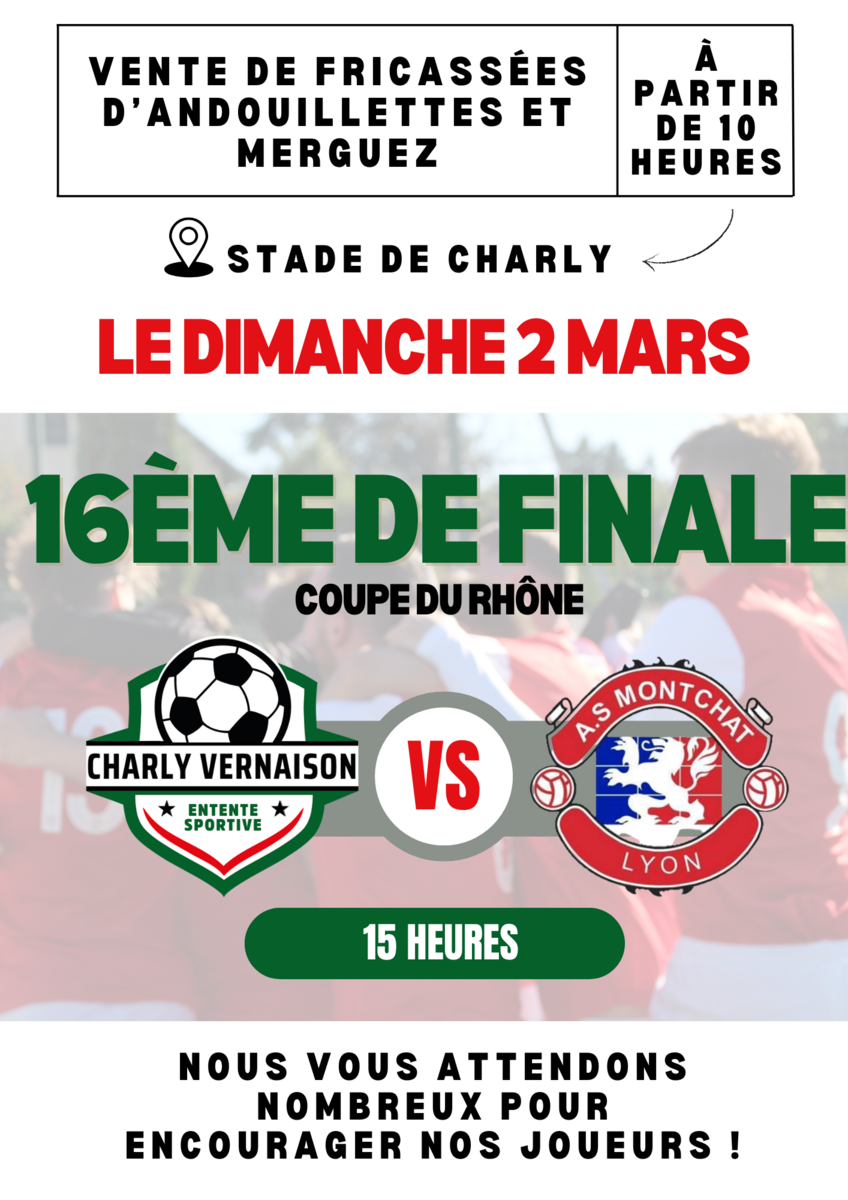 A partir de 15 heures, nos Séniors joueront leur 16ème de finale de coupe du Rhône contre l'AS Montchat.