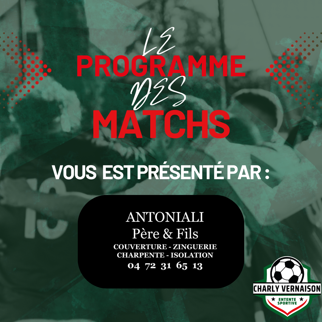 Retrouvez le programme des matchs du week-end du 31 janvier, 01 et 02 février de l'ES Charly Vernaison !