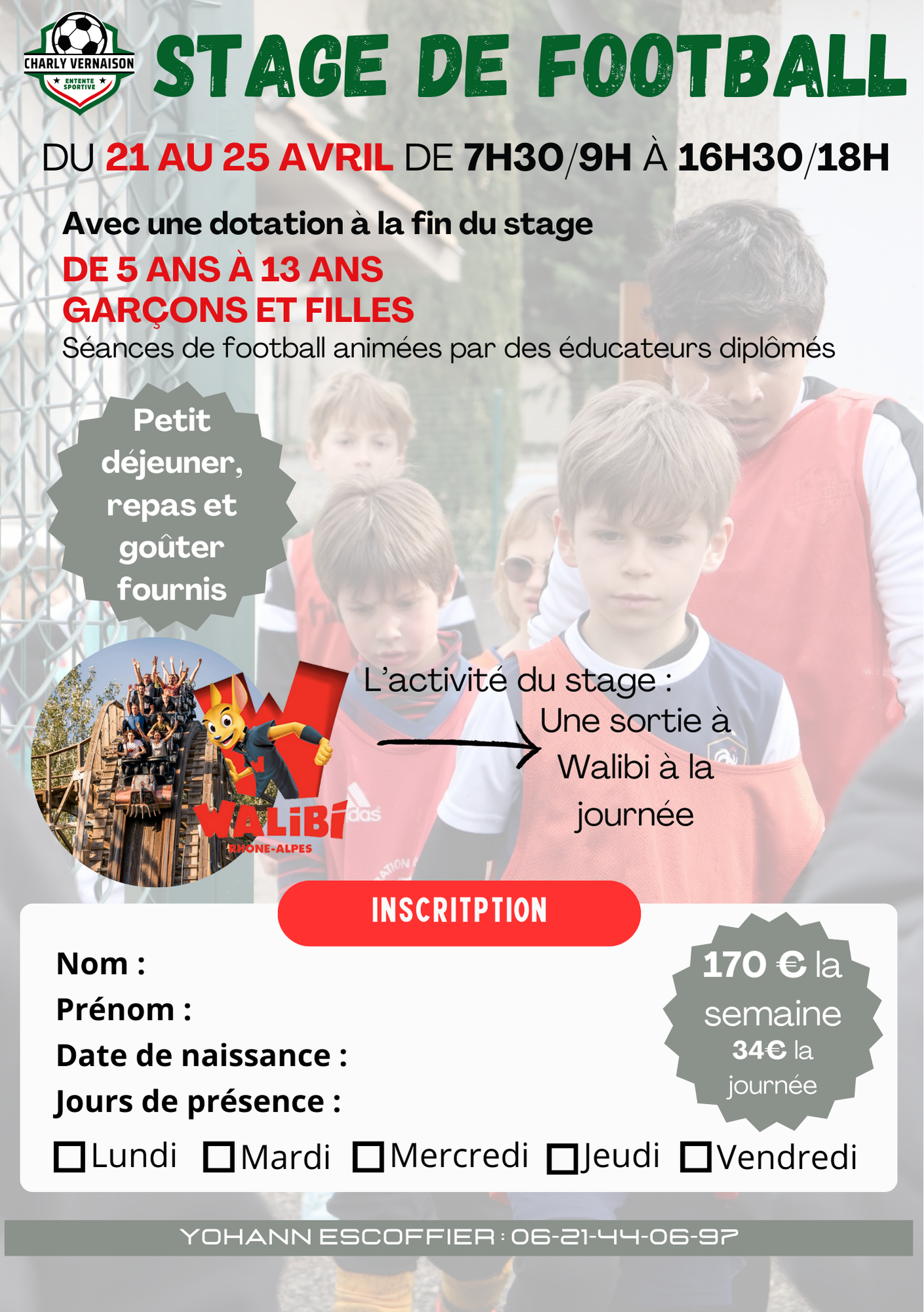 Du 21 au 25 avril, rejoins-nous pour un stage mêlant foot et plein d’autres activités !